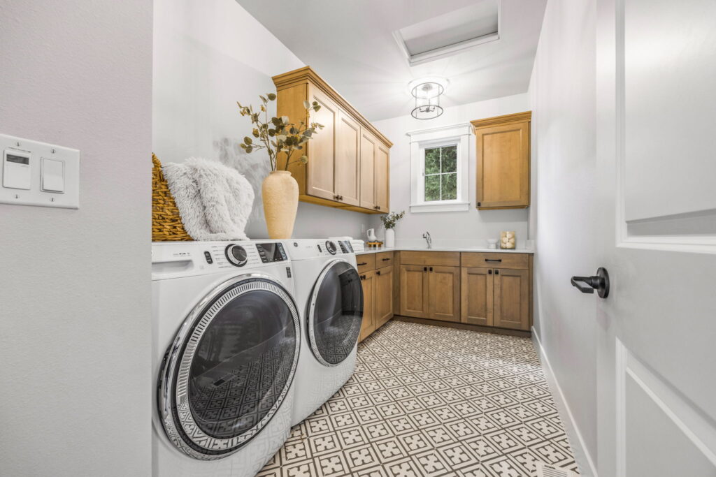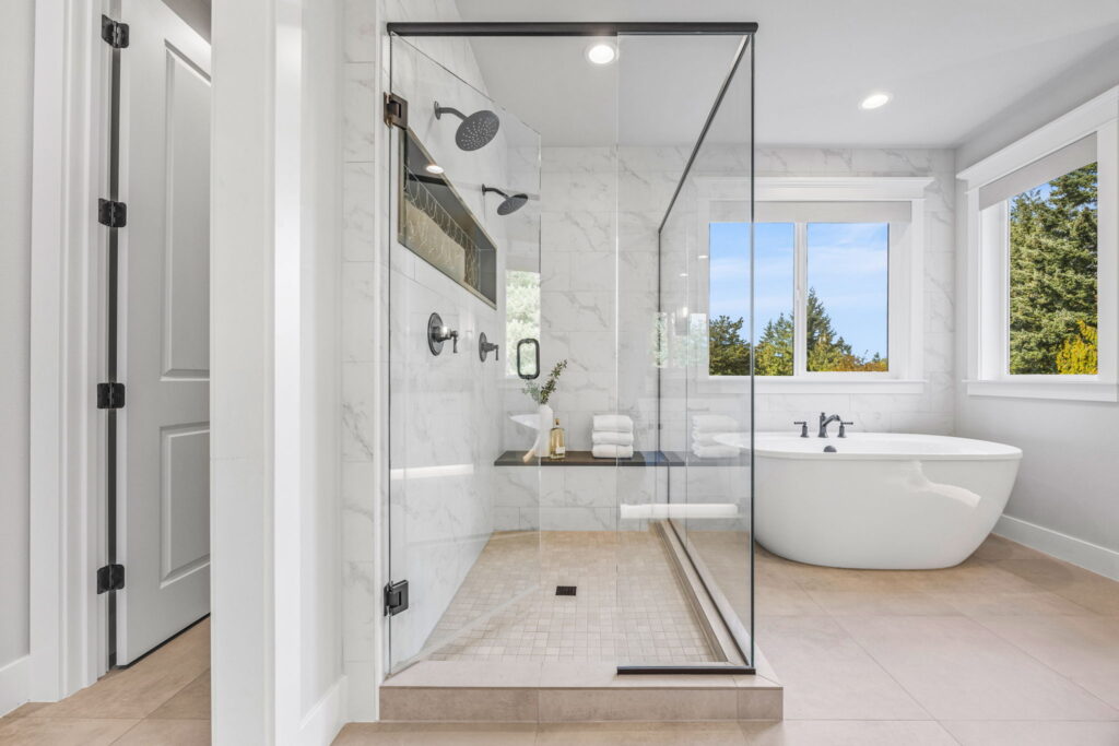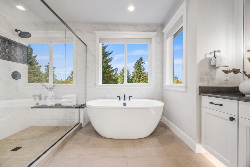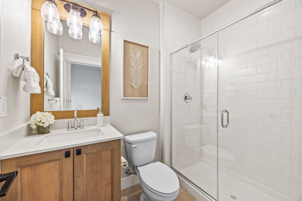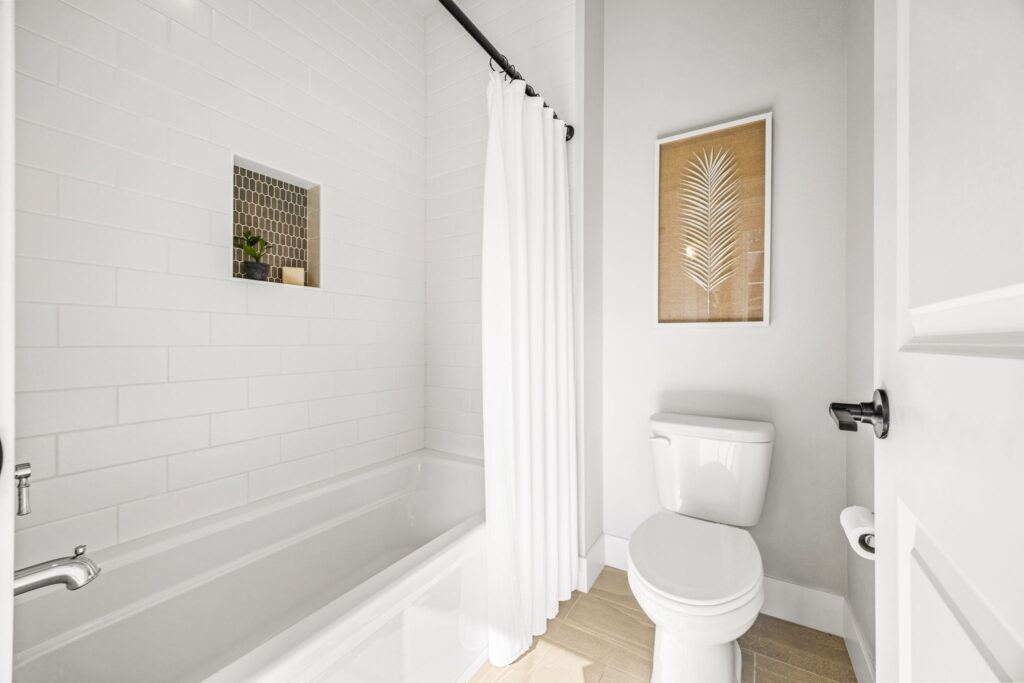- Spa-inspired primary baths, heated tile floors, and undercabinet lighting