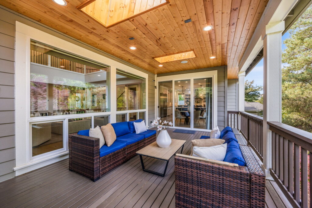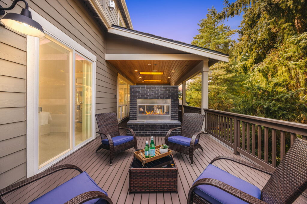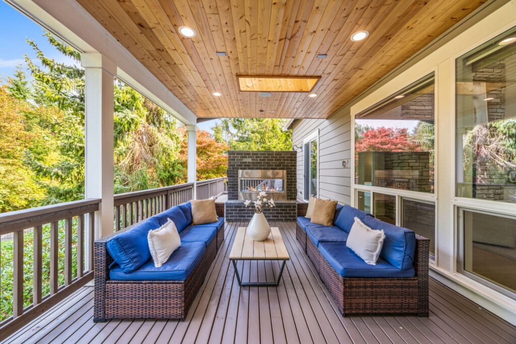 - ​Oversized covered deck with Skylights and a dual-sided fireplace