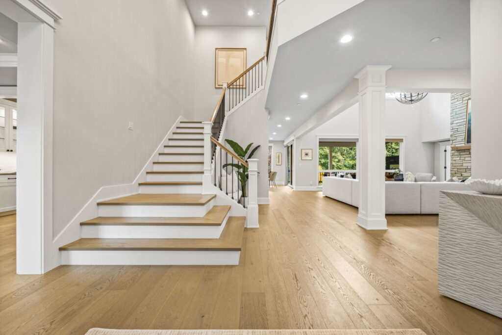 - ​Wide plank engineered hardwoods and quartz countertops
